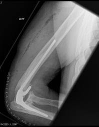 X ray showing Total Elbow Replacement