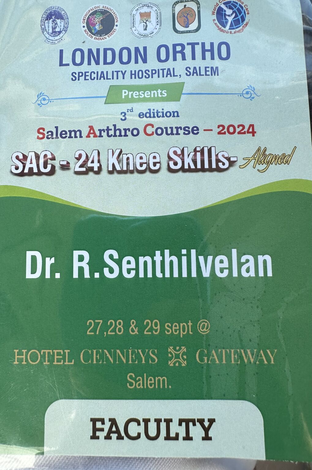 Invited as Faculty for Salem Arthroscopy and Arthroplasty course