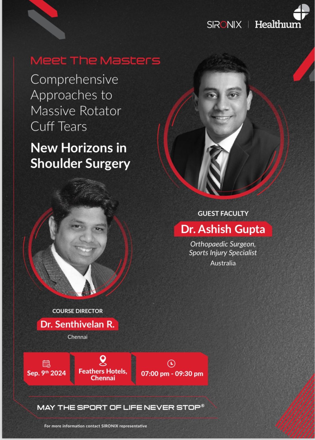 We also had consultants Dr Sivaraman, Dr Clement, Dr VijayReddy, Dr Kathir Stalin, Dr Prakash Ayyadurai, Dr Giri Chellamuthu talk on various options for Massive cuff repair.