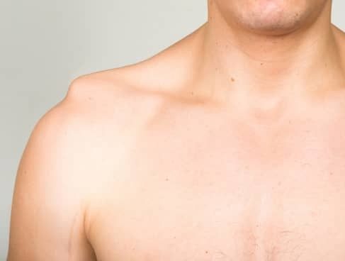 If the CC ligaments are torn, the weight of the arm pulls the shoulder blade downward, creating a visible bump on top of the shoulder.