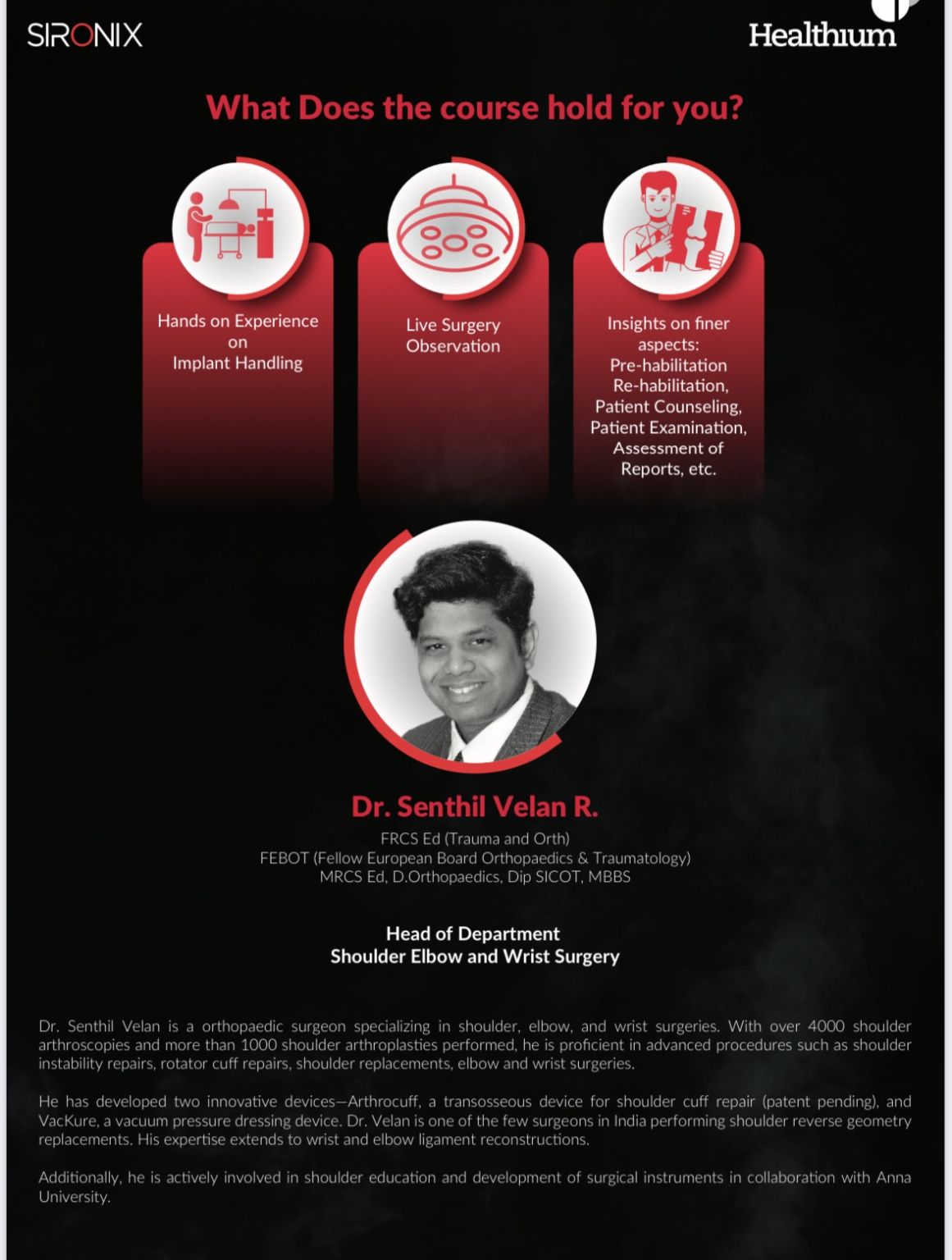 At MIOT International Shoulder Upper Limb Unit we pride ourselves in striving to provide the best of Shoulder Elbow care in the country, be it to patients or teaching.
